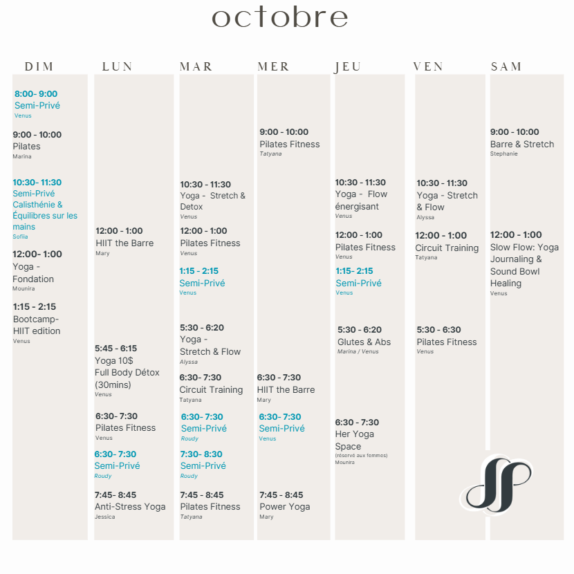 Horaire des cours
