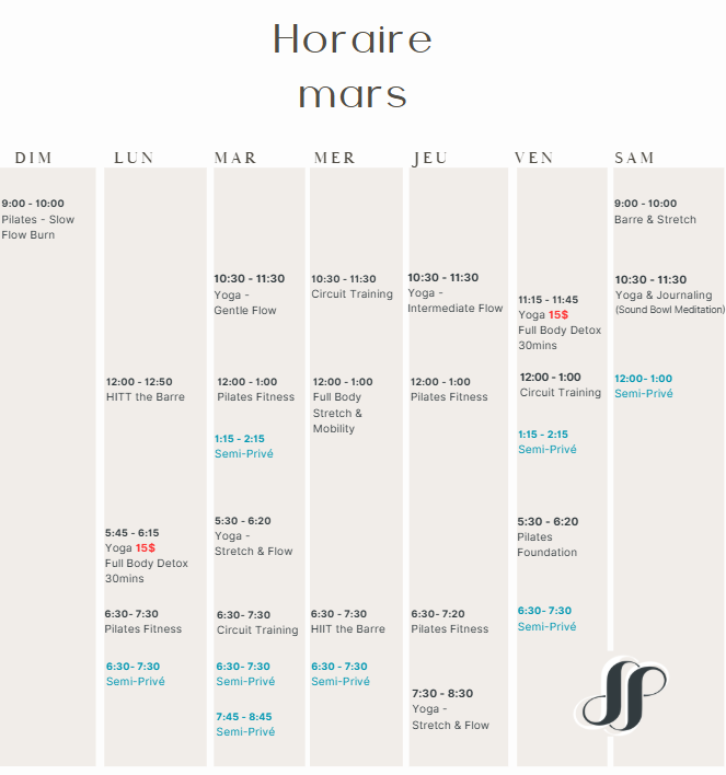 Horaire des Cours